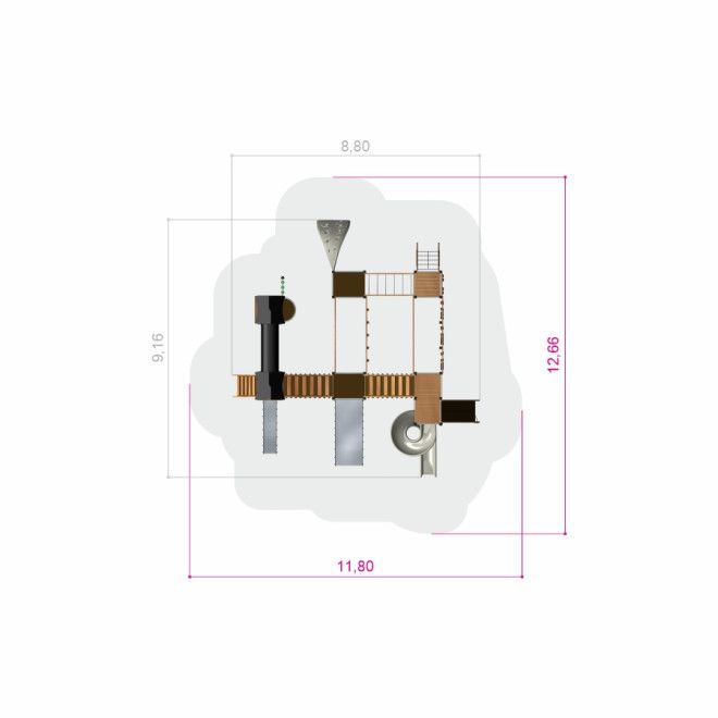 Mastodon castle with slide, wooden playhouse - Տեսքը վերևից