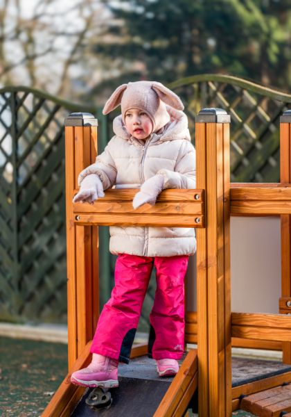 Անվտանգության գոտին և պլատֆորմի բարձրությունը ապահովում են անվտանգ խաղային միջավայր փոքր երեխաների համար։ Կրիտիկական անկման բարձրությունը և համապատասխան ընկնող մակերեսը նվազեցնում են վնասվածքների ռիսկը։ Խաղահրապարակը համապատասխանում է տարիքային խմբին 1-8 տարեկան երեխաների համար, ինչը երաշխավորում է նրա հարմարեցվածությունը և անվտանգությունը խաղի ընթացքում։
