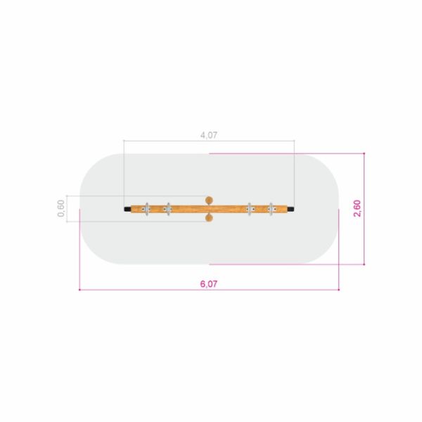 Սա խաղային սարքը պատրաստված է ռոբինիայի փայտից, որն առանձնանում է իր ամրությամբ և դիմացկունությամբ, չժանգոտվող պողպատից՝ հավելյալ ամրության և հուսալիության համար, ինչպես նաև ռետինից՝ ապահովելու համար անվտանգ և հարմար մակերեսներ։