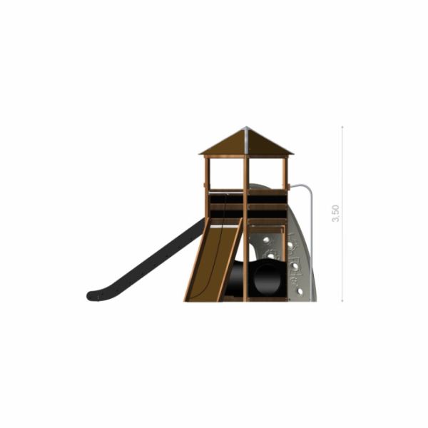 Այս խաղահրապարակը պատրաստված է բարձրորակ ձյունածաղկի փայտից, չժանգոտվող և ցինկապատ պողպատից, վերամշակված HDPE նյութից, հզորացված պոլիպրոպիլենային պարաններից և LLDPE և PE պլաստիկից։ Անդրադարձող ջրակայուն փայտե շփումը ապահովում է դիմացկունություն և երկարաժամկետ ծառայություն՝ դիմակայելով կլիմայական պայմաններին։