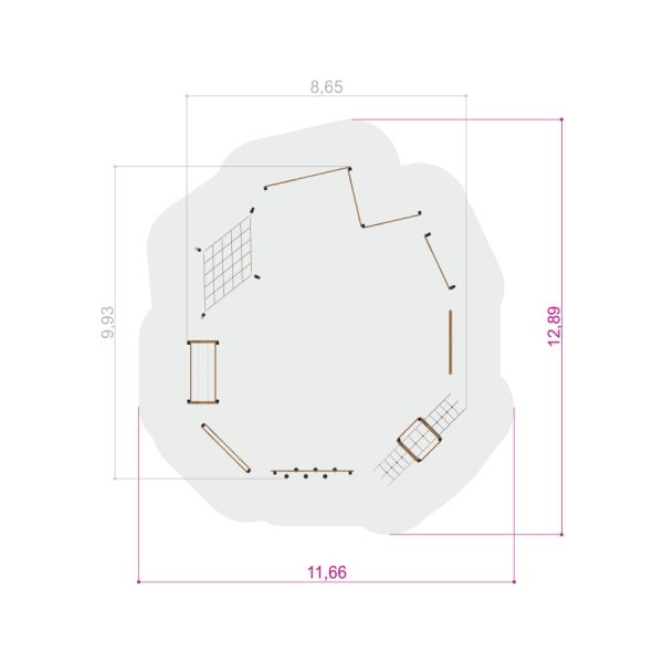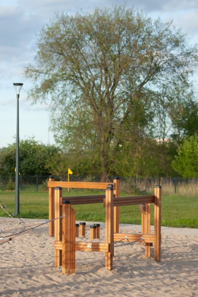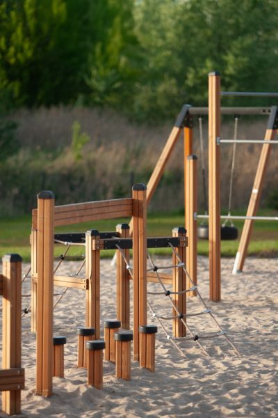 Այս համալիրն իդեալական է բացօթյա մարզական և ժամանցային տարածքների համար, որտեղ երեխաները կարող են զարգացնել իրենց հավասարակշռությունը, ուժը և կոորդինացիան, միաժամանակ վայելելով խաղը։