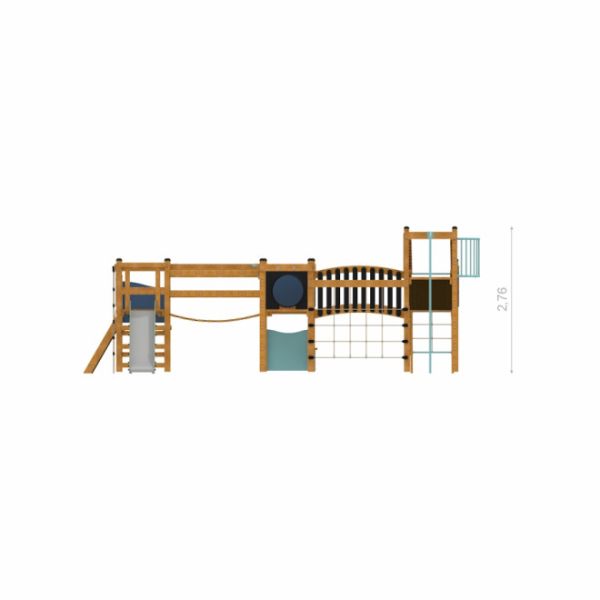 Խաղային համալիրի կառուցվածքը հարմար է 3 և ավելի տարիքային խմբերի համար՝ ապահովելով բազմաստիճան պլատֆորմների բարձրություն և անհրաժեշտ անվտանգության գոտի: Կրիտիկական անկման բարձրությունը համապատասխանում է անվտանգության պահանջներին, իսկ ընկնող մակերեսի կազմակերպումը երաշխավորում է խաղային տարածքի անվտանգությունը:
